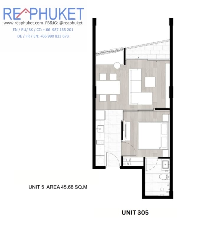 Enjoy living in investment apartment in the most favorite location in south Phuket. Fantastic location, within walking distance to one of the most beautiful Phuket beaches – Nai Harn beach. As a part of Rawai, your new apartment is in close proximity to many restaurants, shops, still remaining in the quiet area.
